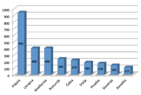 Število franšiznih sistemov v državah srednje in vzhodne Evrope